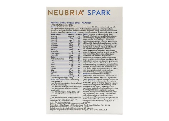 Neubria Memory je prirodni, veganski suplement sa 22 vitamina i minerala, koenzimom Q10 i biljnim ekstraktima. Kreiran je posebno za one koji žele da unaprede svoje pamćenje, kognitivne funkcije i sposobnost učenja.Neubria Memory deluje na biološke procese uključene u nepatološko s ...