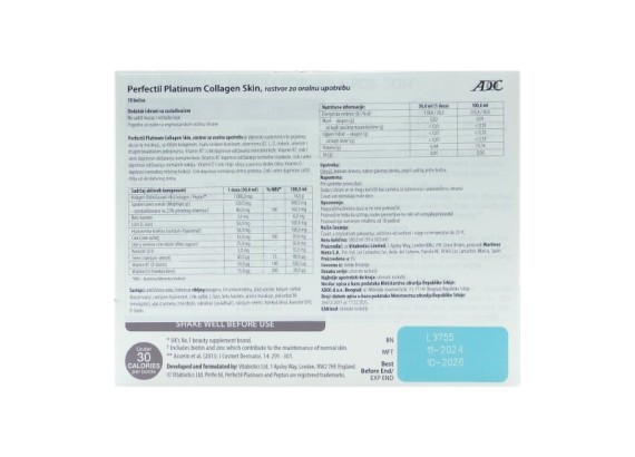 Perfectil Platinum Collagen Skin je dodatak ishrani prijatnog ukusa marakuje sa ribljim kolagenom, hijaluronskom kiselinom, vitaminima i mineralima.Vitamin B7 i cink doprinose održavanju normalne kože.Vitamin B7, cink i selen doprinose održavanju normalne kose.Vitamin B7 doprinosi održavanju nor ...